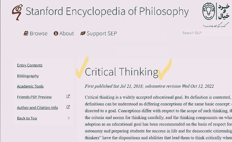 خرد و خیال – دانشنامه استنفورد یکی از دقیقترین دانشنامههای آنلاینی است که مفهوم تفکر انتقادی (سنجشگرانه اندیشی) را واکاوی کرده است.